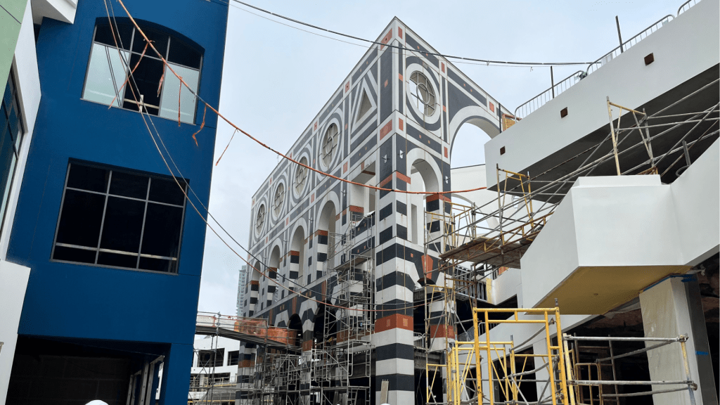 It was May of 2023, and the marine layer began to part as a small group in hardhats gathered beneath the postmodern pediment of the old Macy’s in downtown San Diego. Through the chatter, a man stepped out from behind the construction fence and invited us to glimpse the future of one of San Diego’s most iconic buildings: Horton Plaza.