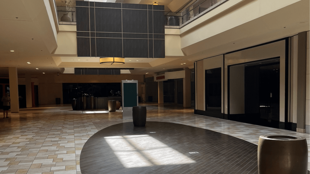 Unlike office buildings, which organize their floors along exterior windows, or warehouses, which prioritize open flexibility, enclosed malls were designed to pull people inward .Their corridors face each other, not the outside world. Their storefronts look into artificial streets, not real ones. Daylight, when it appears at all, is carefully rationed through skylights positioned to dramatize space rather than evenly illuminate it. Everything about the mall’s plan assumes a constant choreography of browsing–movement without a fixed destination.